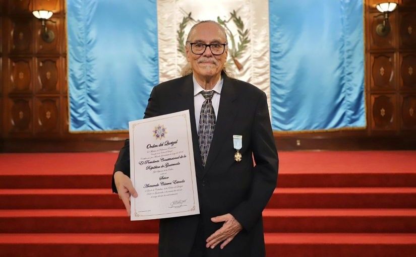 Foto: Armando Cáceres en el acto en el que recibió el tÃtulo de Caballero de la Orden del Quetzal, en junio de 2024. (Foto Prensa Libre: cortesÃa familia Cáceres)