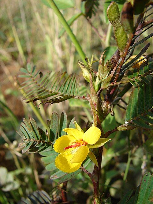 Chamaecrista nictitans (L.) Moench (sinónimo: Cassia nictidans L.). Foto: Forest & Kim Starr (licencia CC).