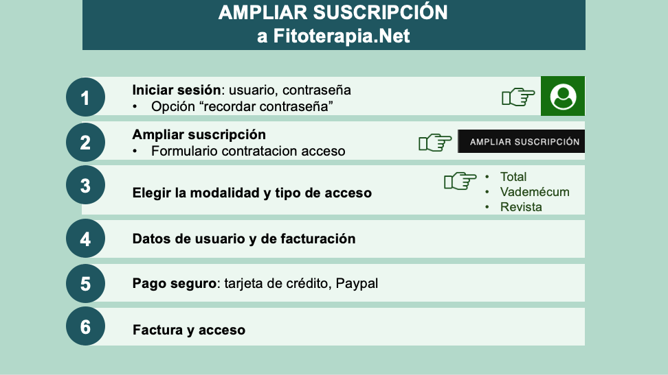 - Ampliar su suscripción, por ejemplo, de "Vademécum" o "Revista" a "Acceso Total". Se amplía la modalidad de suscripción, pero no el periodo de contratación.