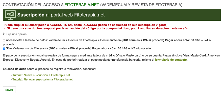 PASO 1. Acceso las claves habituales en Fitoterapia.net (usuario y contraseña)