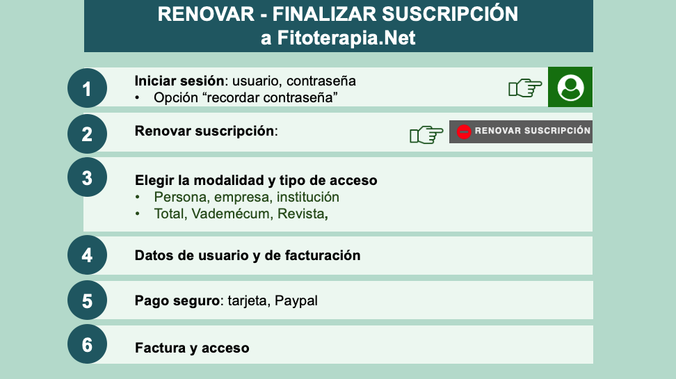- Renovar la suscripción anual a Fitoterapia.net, cuando ha caducado.