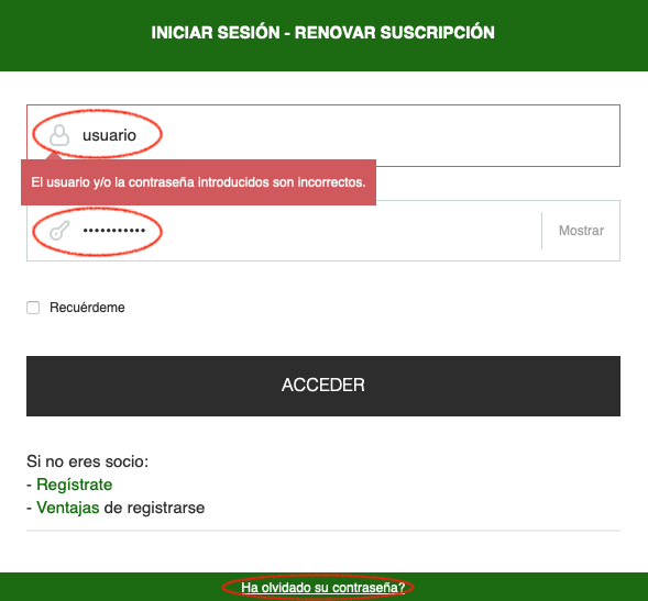✅ Hacer clic sobre "Ha olvidado la contraseña" y escribir la dirección. Recibirá un correo con sus claves.